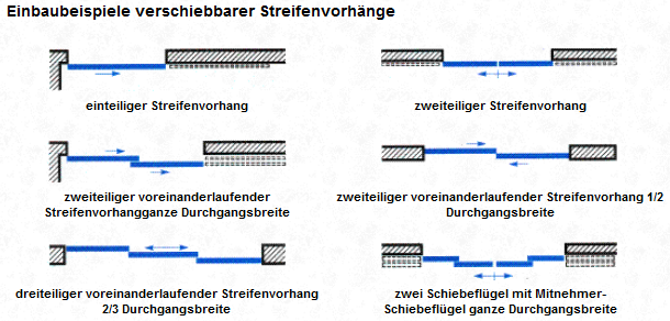 Streifenvorhänge in Laufschienen-Aufhängung bzw. elektrisch verschiebbar