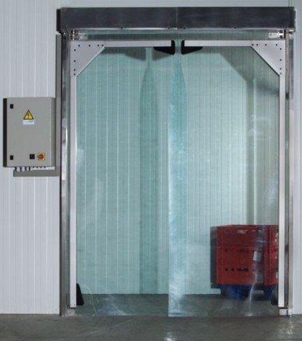 Die Pendeltüren bestehen wahlweise aus Weich-PVC oder Hartkunststoff und sind bei Bedarf mit elektrischem Antrieb lieferbar.