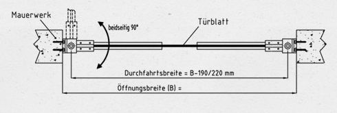 - Pendelklappe oder Rohrbahnaufsatz zur Anordnung oberhalb der Pendeltür Elektrische Antrieb